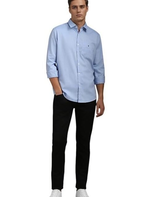 Louis Philippe Men’s Easy to Care Cotton Slim fit Solid Casual Shirt with Natural Stretch