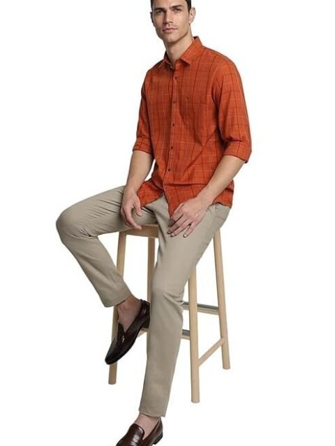 Peter England Men’s Checkered Casual Everyday Full Sleeve Shirt | 100% Cotton