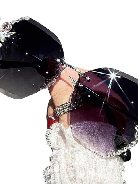 Dervin Sunglasses for Women – UV400 Protection, Rimless Flower Diamond-Cut Lens, Trendy Driving Shades for Women (Oversized)