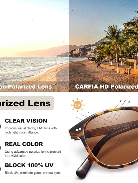 CARFIA Retro Polarized Sunglasses for Women Small and Medium Face UV Protection, Handcrafted Acetate Frame Sunnies