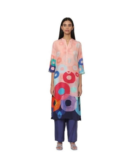 Peach Medium Crepe Printed Kurta Bottom Set for Women
