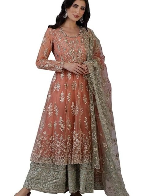 Traditional Embroidered Kaftan Palazzo Set, Pink, V-Neck with Fringe Details, Floral Embellished