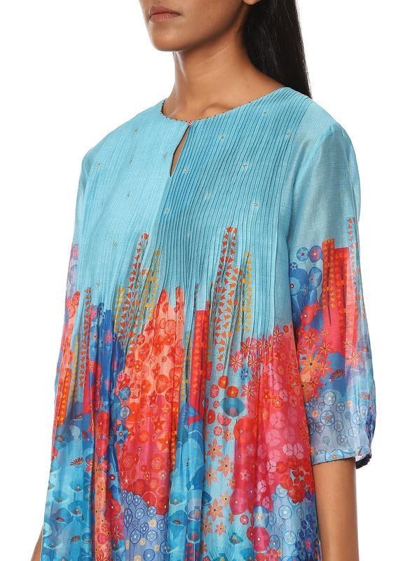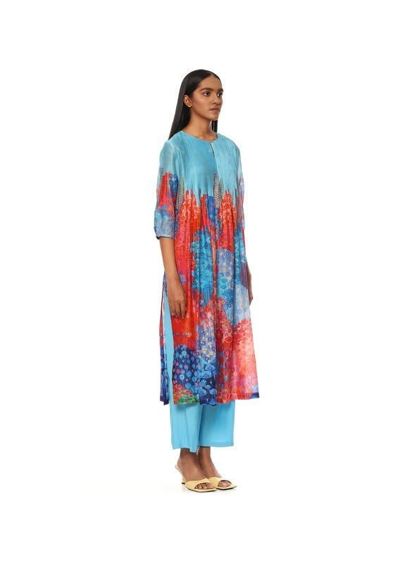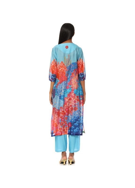Blue Powder Chanderi Printed Kurta Bottom Set for Women