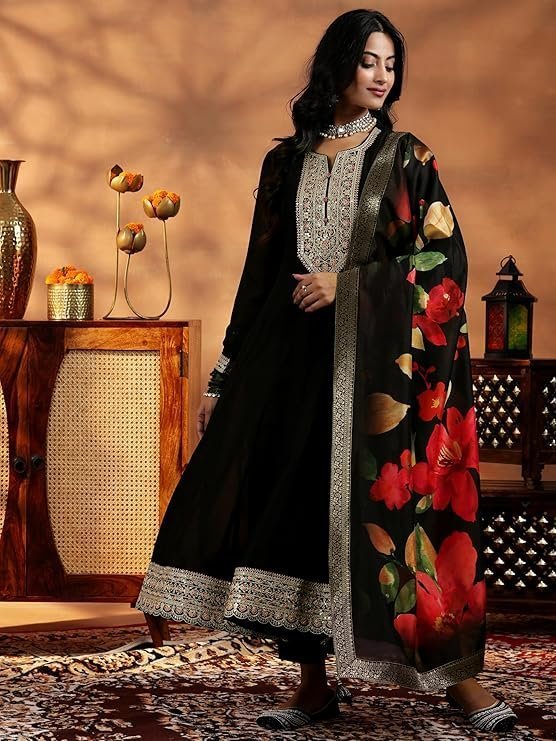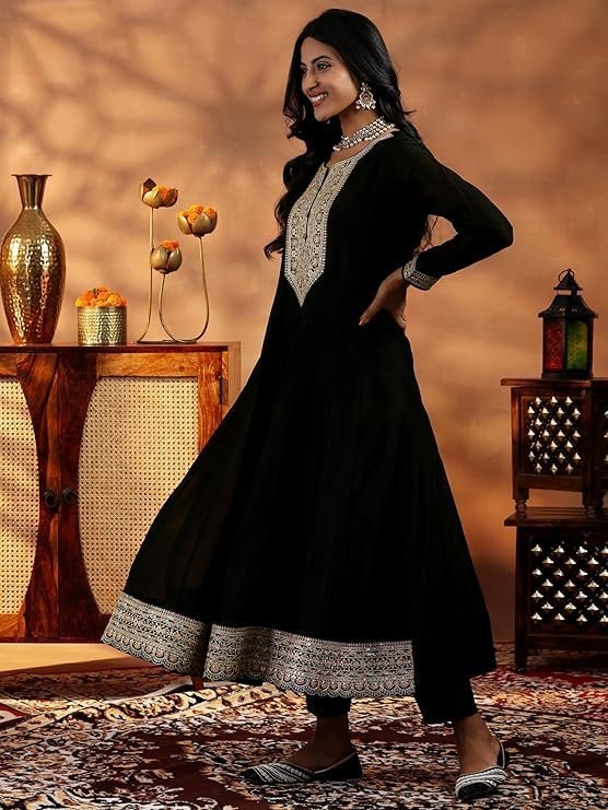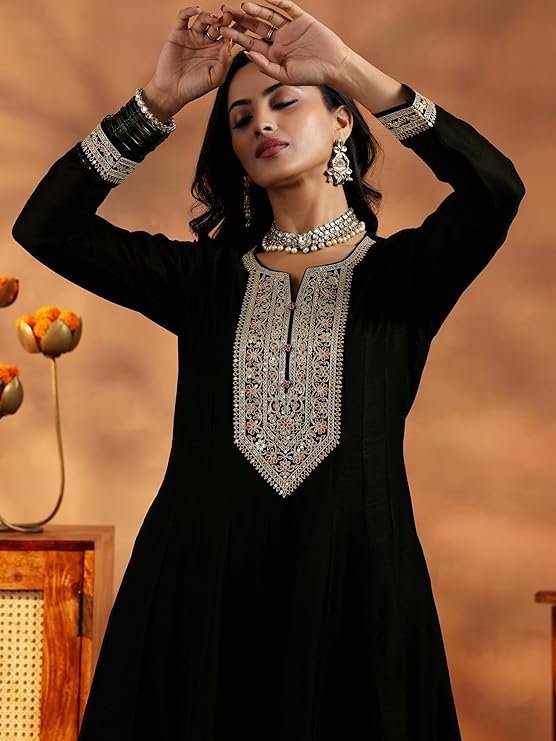 Libas Black Silk Blend Yoke Design Kurta Sets for Women