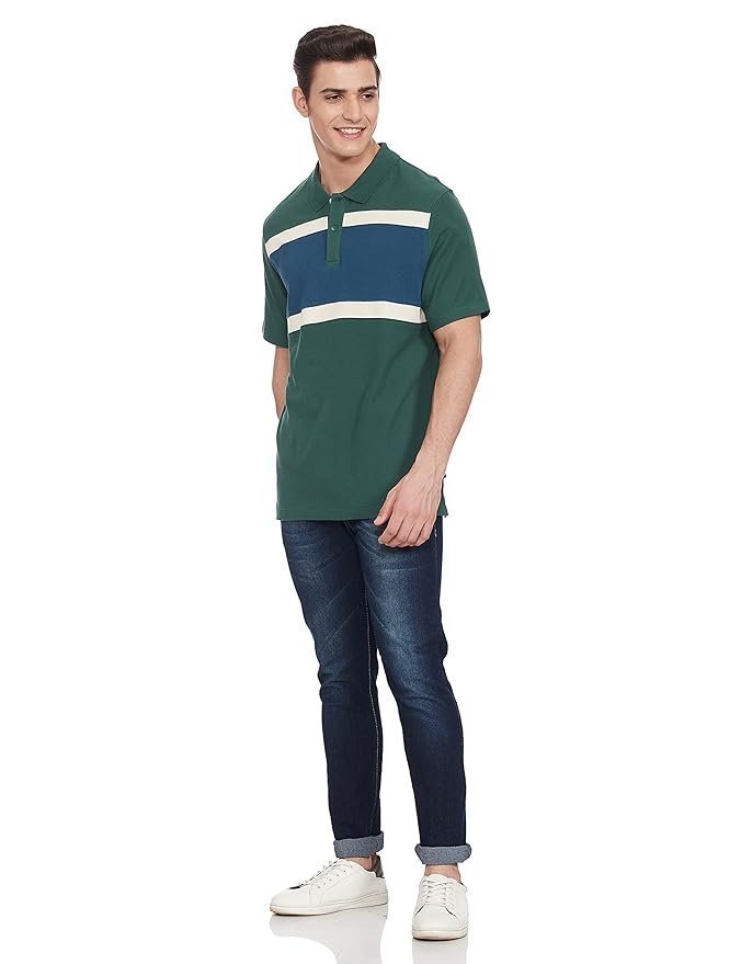 Marks & Spencer Mens Striped Cotton Polo Neck Regular Fit T-Shirt