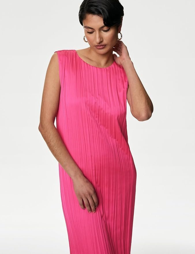 • A distinctive plisse finish adds texture to this sleeveless column dress from our Autograph collection. It’s cut to a regular fit, with a straight, body-skimming shape. The simple round neckline curves into a subtle button and zip fastening at the back. Piped trims at the neck and armholes add a neat finish. A full lining ensures that the dress is comfortable to wear. Autograph: premium investment pieces featuring contemporary cuts and refined finishing touches.