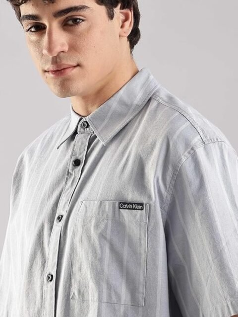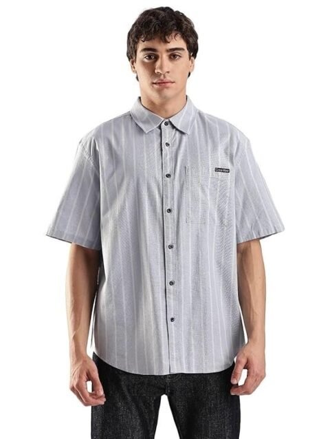 Calvin Klein Jeans Striped Relaxed-Fit Oxford Woven Shirt
